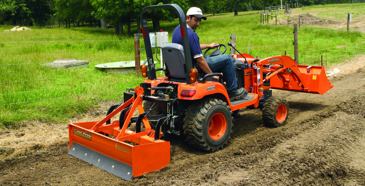 Las Escrepas de cajón con timones y doble cuchilla, modelo Land Pride BB0548, están diseñadas para tractores subcompactos con categoría de enganche I. Son ideales para relleno y nivelación de terrenos, limpieza de corrales de engorda, sitios de construcción, además de mantenimiento en pequeñas granjas agrícolas, caminos y calles de terracería. Los timones ajustables manualmente en profundidad y las cuchillas con movimiento delantero y trasero hacen que estas escrepas sean particularmente efectivas y productivas para cualquier trabajo ligero. Escrepa de cajón BB0548 equipada con 2 Cuchillas (Delantera y trasera) de bordes cortantes de alto carbono tratados térmicamente, reversibles y reemplazables de 1/2" x 15.2 cm y 4 Timones delanteros de acero tratado térmicamente de 3/4" x 2 ½" x 38.1 cm con dos posiciones de trabajo (fuera del suelo o 6 cm de profundidad.